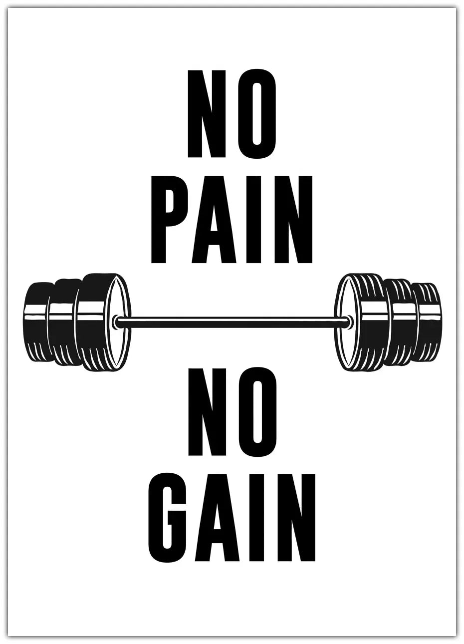 No Pain No Gain er en motiverende plakat, der minder dig om, at ingen succes opnås uden indsats.