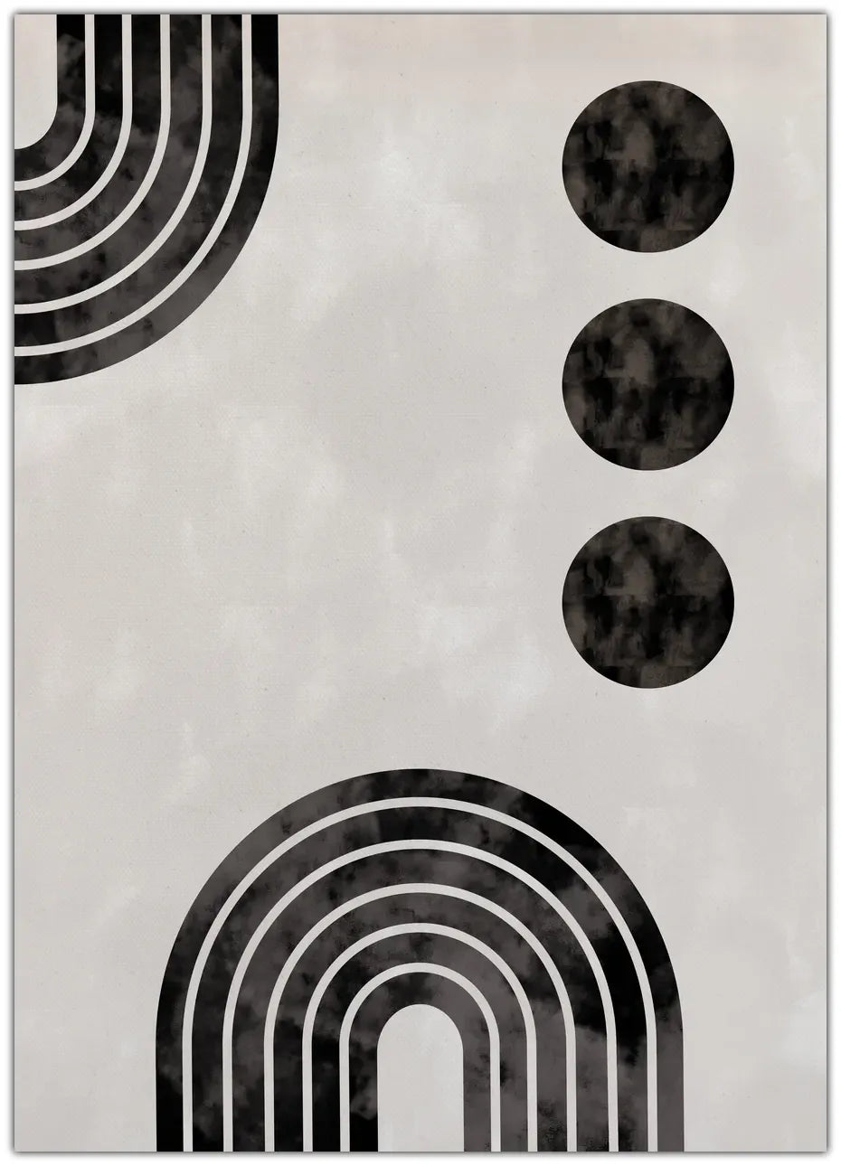 En elegant plakat med minimalistiske buer og dråbeformer, der tilføjer et moderne og stilrent udtryk til dit hjem.