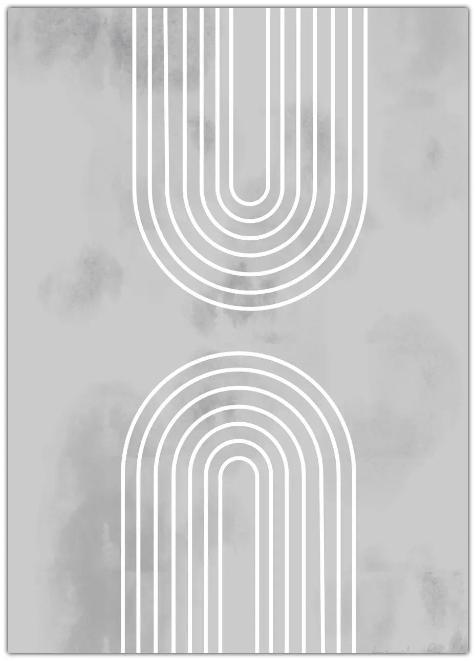 En sofistikeret plakat med kølige isblå buer, der skaber et elegant og minimalistisk udtryk i dit hjem.