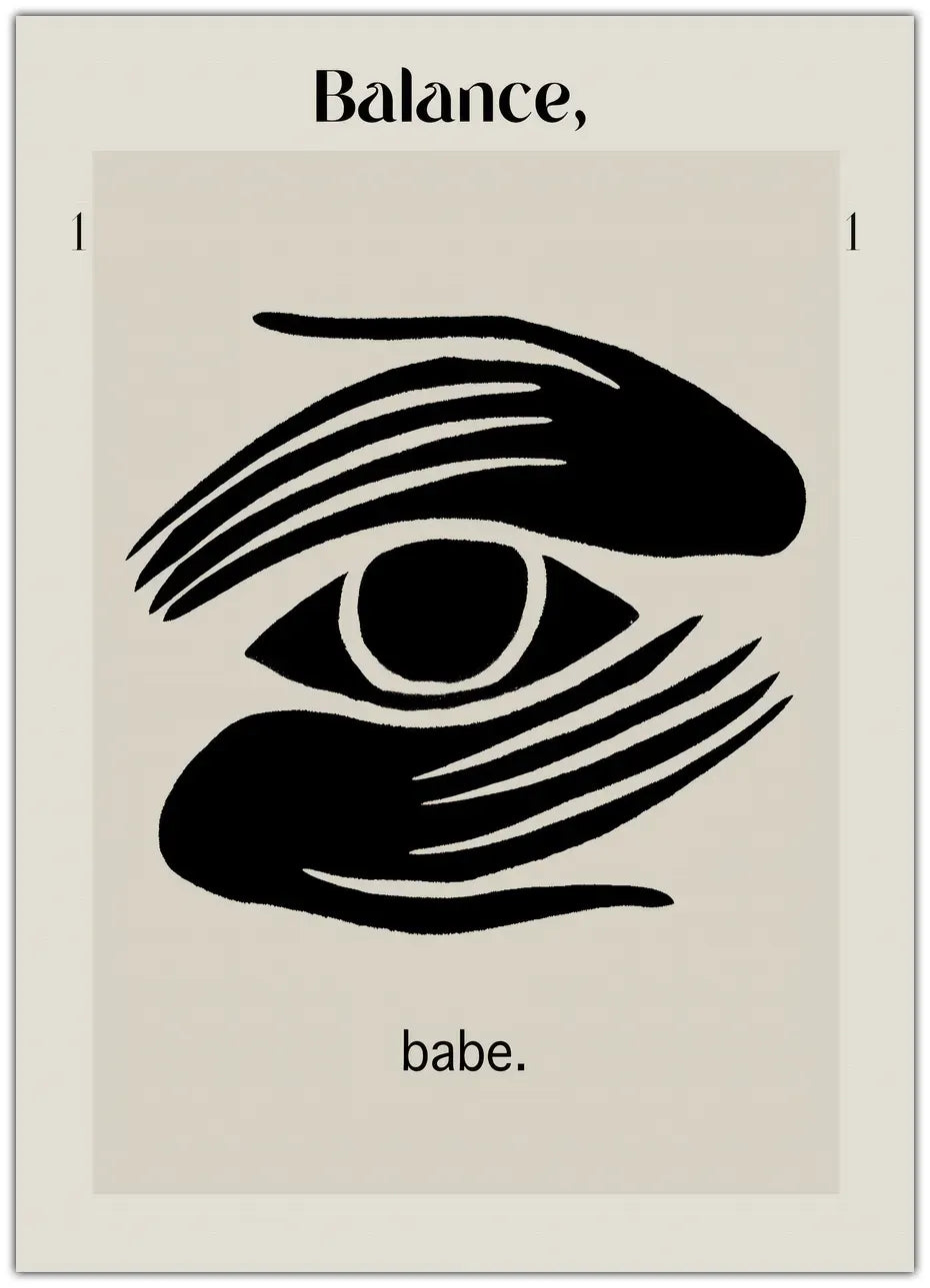 En inspirerende plakat med teksten "Balance, Babe" i en elegant og moderne typografi, perfekt til at minde dig selv om vigtigheden af balance og harmoni i dit liv.