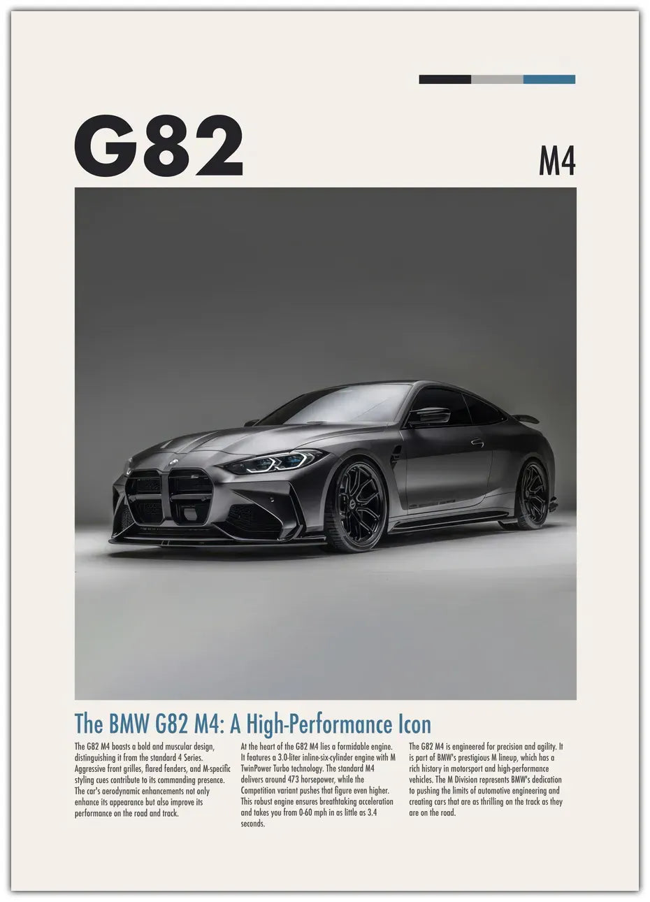 BMW G82 M4 Sort: Uimodståelig kraft og elegance! Oplev den perfekte balance mellem ydeevne og stil med vores plakat, der hylder den imponerende BMW G82 M4 i sofistikeret sort.