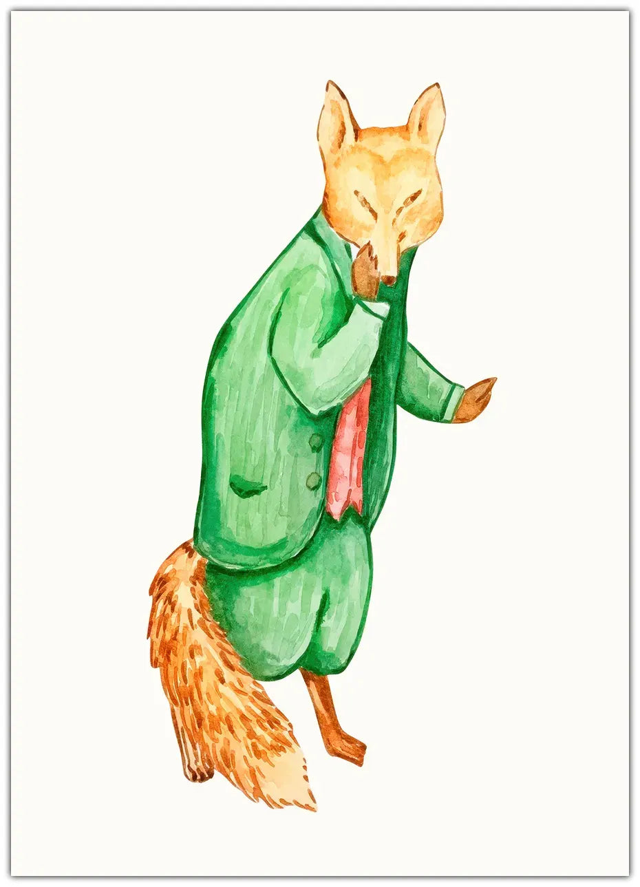 “Business Fox” plakaten bringer et smil frem hos både børn og voksne. Den viser en elegant ræv i jakkesæt, malet i bløde akvarelfarver, som giver motivet et unikt og håndmalet udtryk. Den perfekte kombination af humor og finesse gør denne plakat til et iøjnefaldende indslag i ethvert rum.