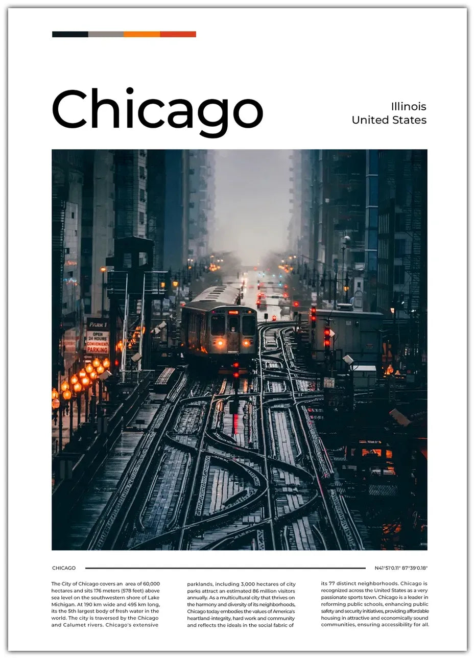 En stilren plakat med "Chicago No1" i et minimalistisk typografisk design – perfekt til dem, der elsker byen og dens ikoniske historie.
