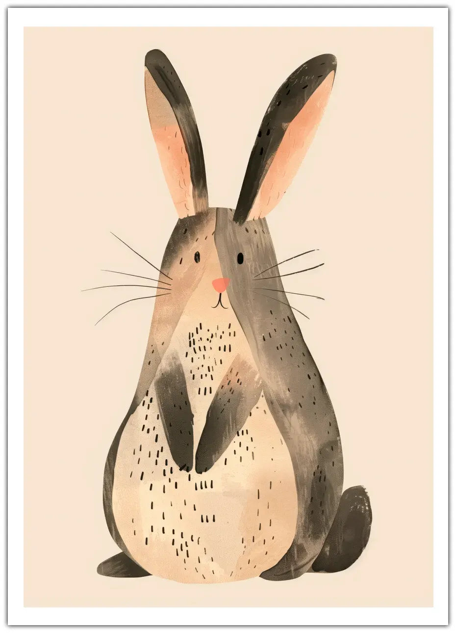 En kær plakat, der fanger den nuttede charme ved en rund og glad kanin. Med sit søde udtryk og fyldige krop tilføjer denne plakat et strejf af legesygt sjov til ethvert rum. Perfekt til børneværelset eller til dem, der elsker at omgive sig med nuttede og hyggelige motiver.