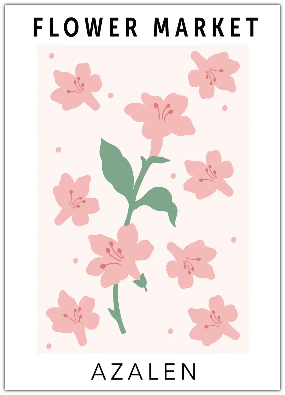 Fang den delikate skønhed af azalea-blomster med vores "Flower Market Azalea" plakat. Et farverigt og livligt design, der bringer lyse og friske forårsfarver ind i dit hjem, perfekt til at skabe en afslappende og indbydende atmosfære.