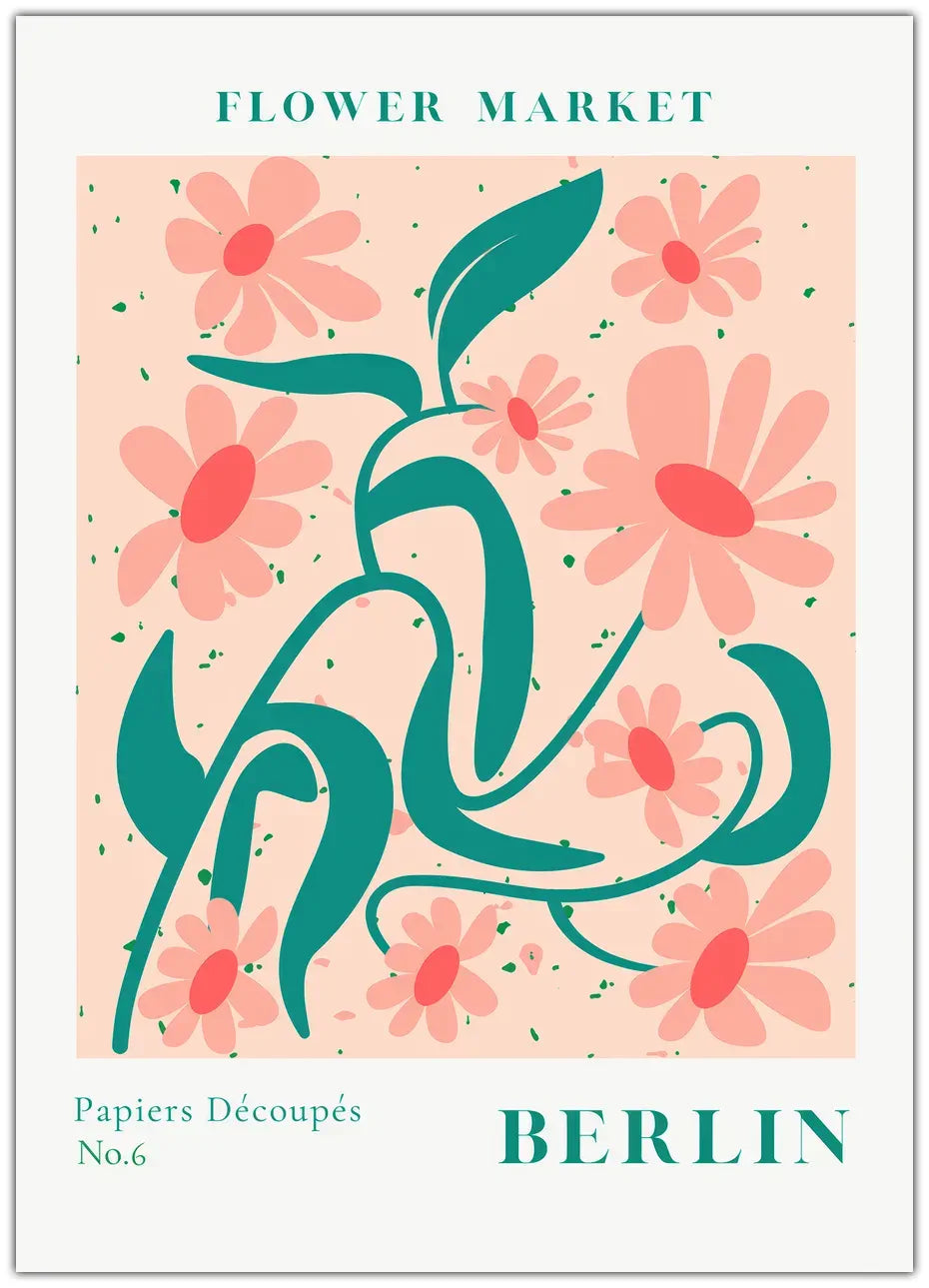 Flower Market Berlin: Blomstrende kreativitet og urban charme! Oplev den livlige skønhed med vores plakat, der fanger atmosfæren og mangfoldigheden på Berlins berømte blomstermarked.