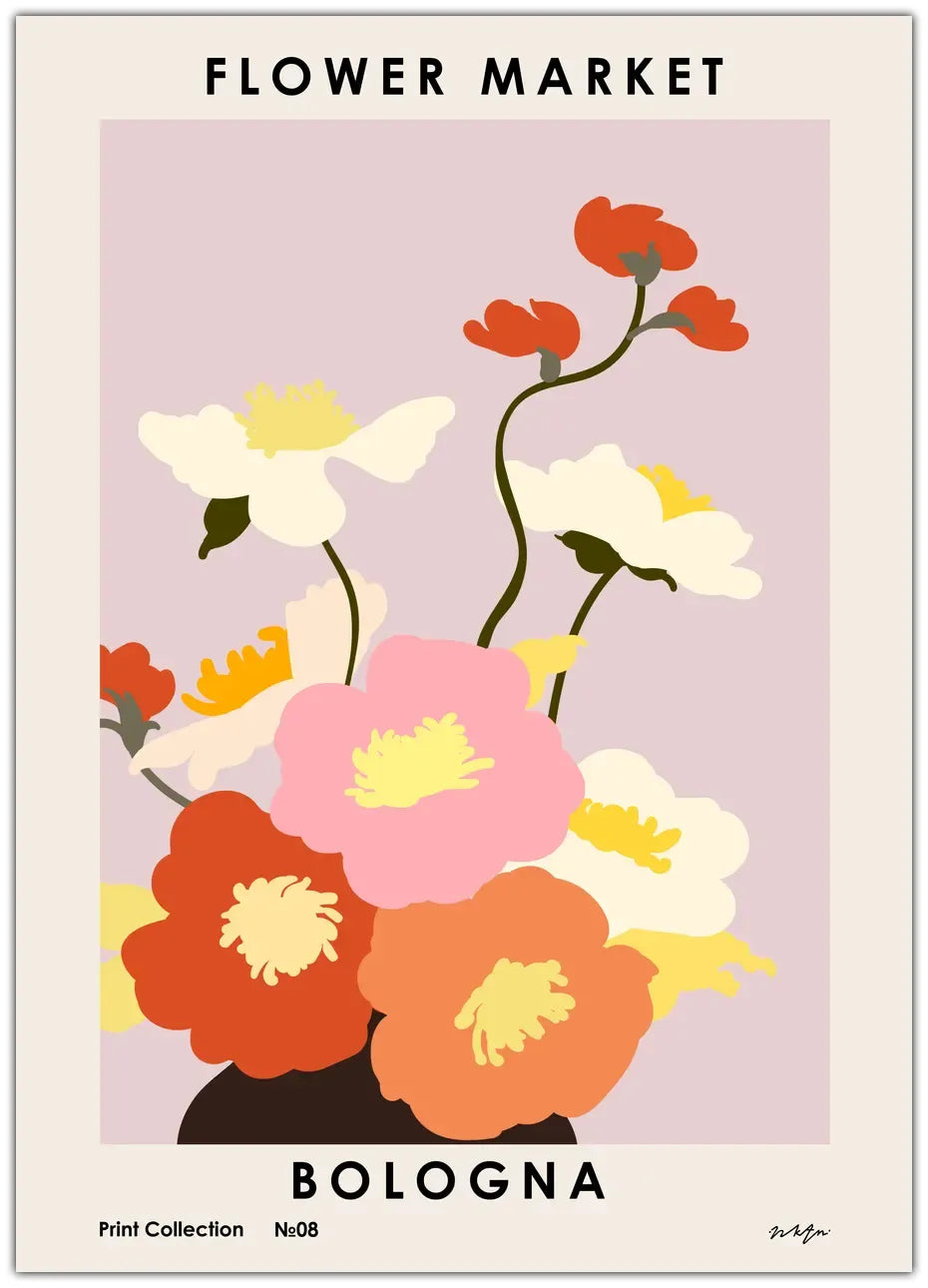 Flower Market Bologna plakat – farverig og charmerende vægkunst