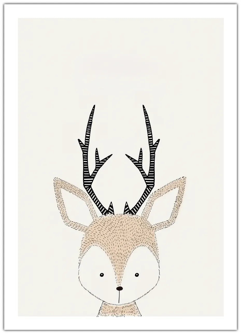 Skab en charmerende og indbydende atmosfære i børneværelset med vores "Friendly Deer" plakat. Et sødt og hyggeligt design med en venlig hjort, der tilføjer en følelse af naturens magi og ro til dit barns rum.