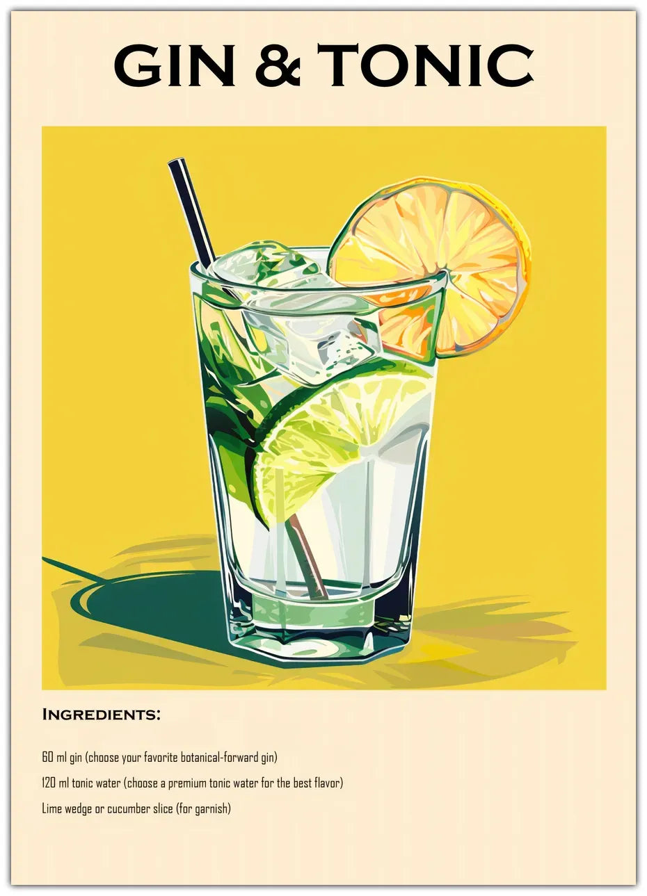 Løft din cocktailoplevelse med vores fortryllende Gin & Tonic-plakat. Tilføj et strejf af forfriskende elegance og britisk charme til dit hjem eller bar med dette klassiske og stilfulde design. Lad dig inspirere til at nyde den perfekte blanding af gin, tonic og citron med vores smukke Gin & Tonic-plakat.