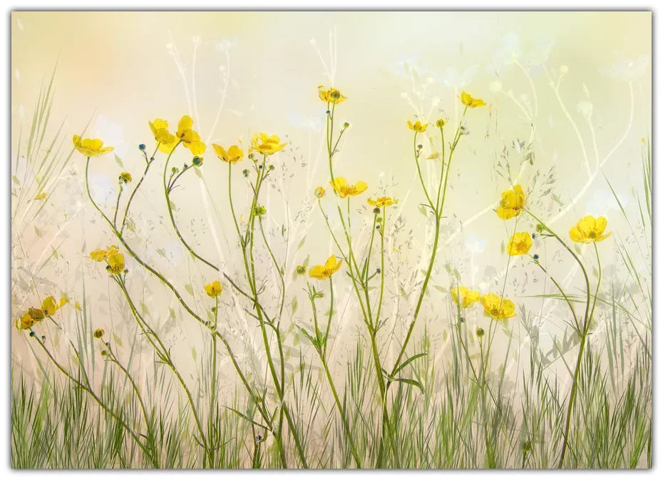 “Good Morning! Plakat” emmer af lethed og forårsfornemmelser. De gule blomster strækker sig mod lyset i et blødt og varmt morgenlys, der bringer en følelse af ro og optimisme. En blomster plakat og natur plakat, der skaber en harmonisk stemning i hjemmet.