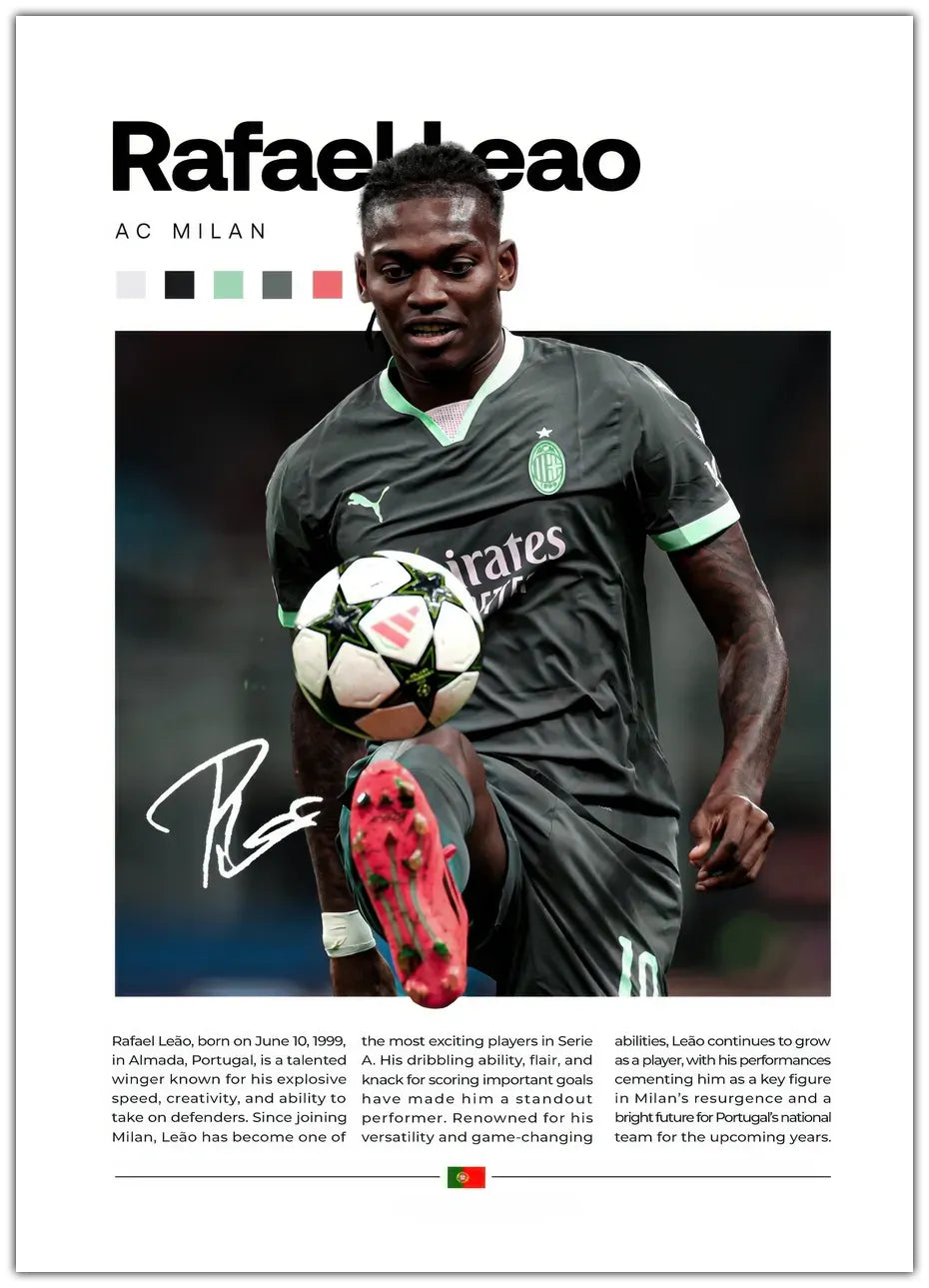Rafael Leão er en portugisisk angriber, kendt for sin fart, teknik og evne til at skabe mål. Han spiller for AC Milan og er anerkendt som et af de største talenter i europæisk fodbold.