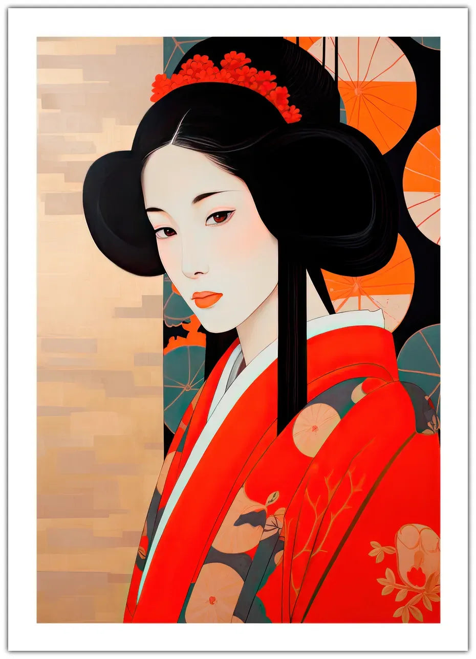 Plakaten forener klassisk japansk kultur med moderne design. Den fine balance mellem enkelhed og intensitet gør den perfekt til enhver, der elsker æstetisk kunst og kulturel symbolik. Den passer smukt ind i både minimalistiske hjem og farverige omgivelser, hvor den tilfører karakter og dybde.