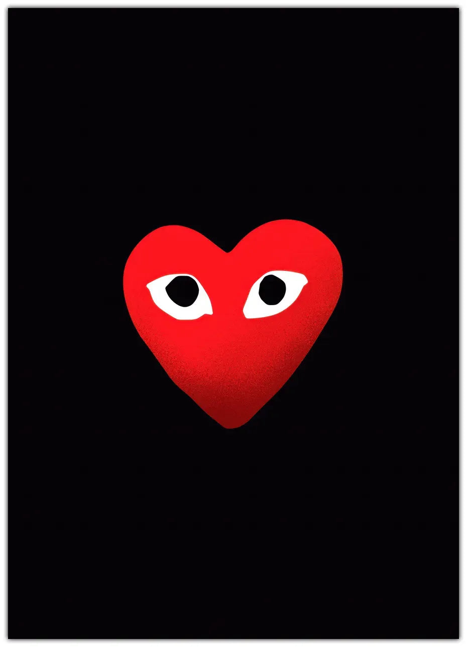 Denne minimalistiske plakat med et rødt hjerte og karakteristiske øjne tilføjer et kunstnerisk og unikt udtryk til ethvert rum. Med sin kontrast mellem det dybe sorte baggrund og de lyse røde og hvide detaljer fanger plakaten både opmærksomhed og fantasi.