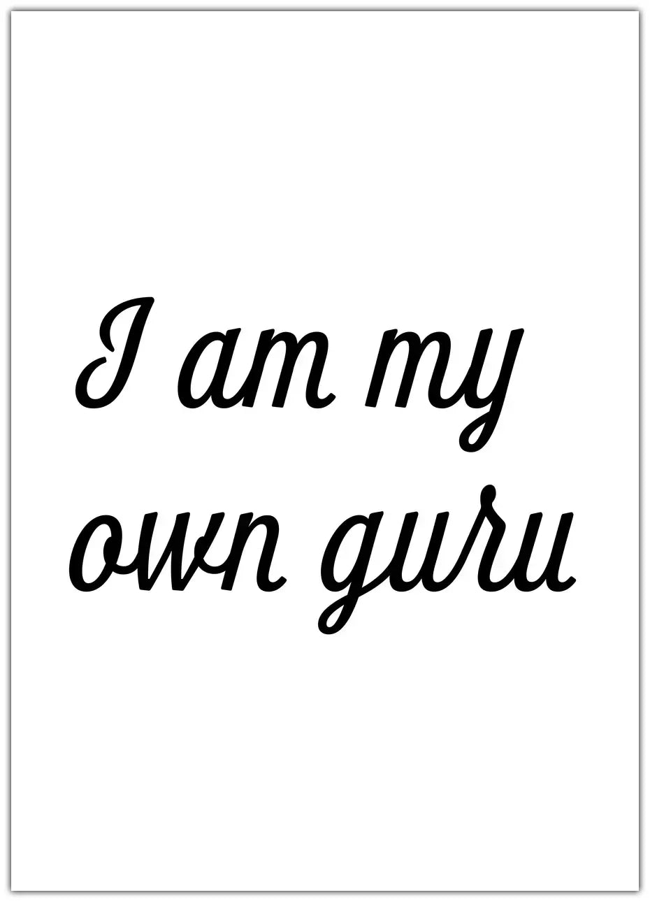 En inspirerende plakat med det styrkende budskab "I am my own guru," der opfordrer til selvstændighed, selvindsigt og indre styrke.