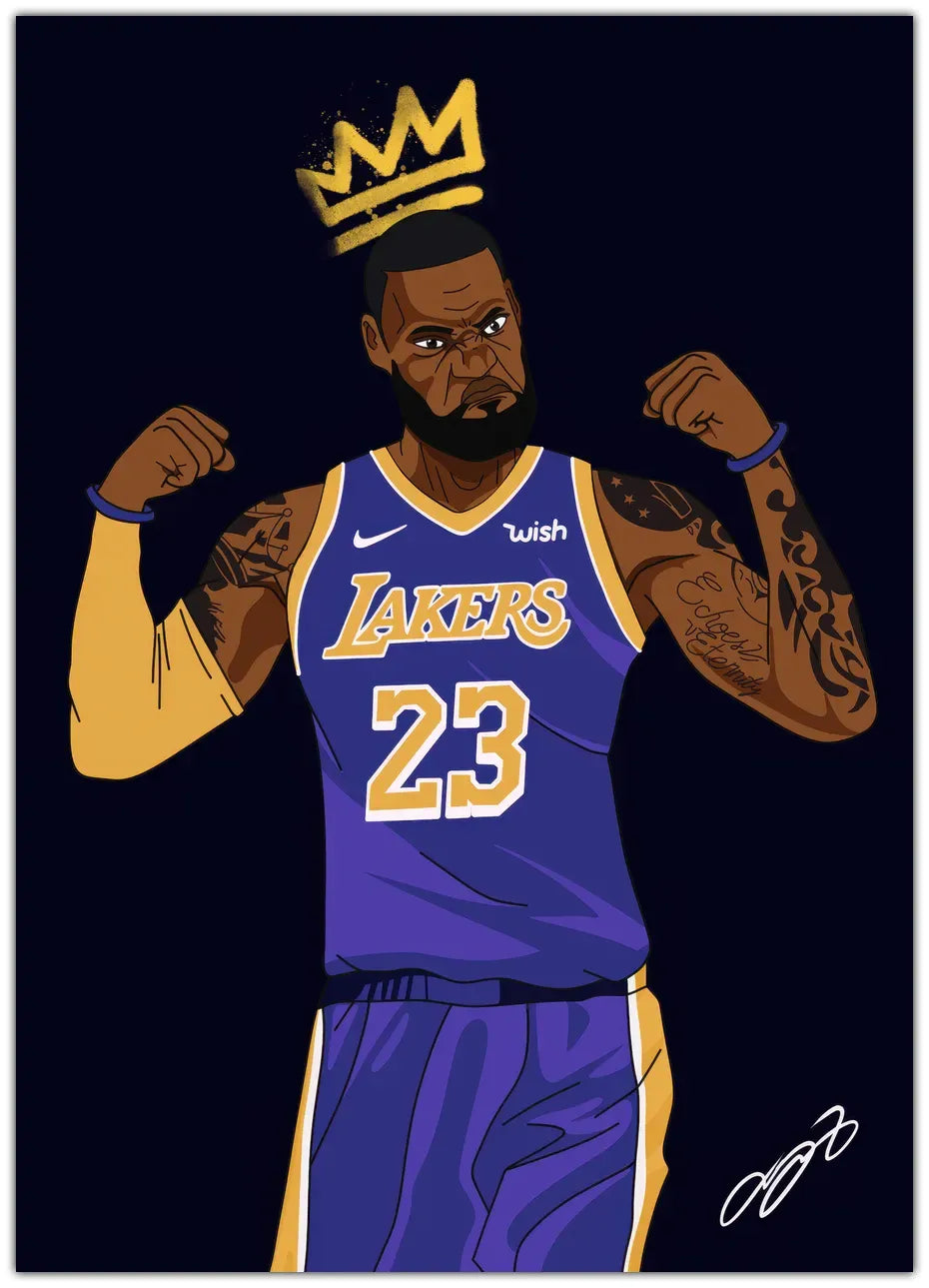 King James: En imponerende plakat, der hylder den legendariske basketspiller LeBron James med et majestætisk og kraftfuldt design. Perfekt til at bringe en atletisk og inspirerende stemning til dit rum.