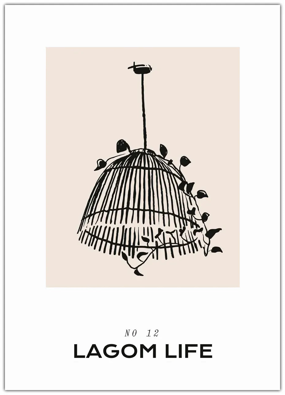 Lagom Life plakaten er en visuel hyldest til det svenske begreb lagom, der betyder "alting i den rette mængde". Denne minimalistiske plakat, med sin enkle illustration af en fugl i et kurv-formet objekt, afspejler den stille elegance og balance, som lagom indebærer. Det er et perfekt design for dem, der søger harmoni og enkelhed i deres liv og hjem.