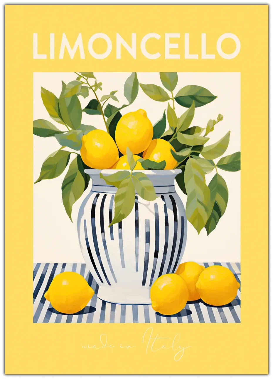 Limons Italy Plakat bringer følelsen af sommer i Italien direkte ind i dit hjem. Det farverige motiv med friske citroner i en klassisk keramikvase emmer af middelhavsstemning og varme dage. Plakaten er perfekt til at skabe et lyst og livligt udtryk i køkkenet, spisestuen eller stuen.