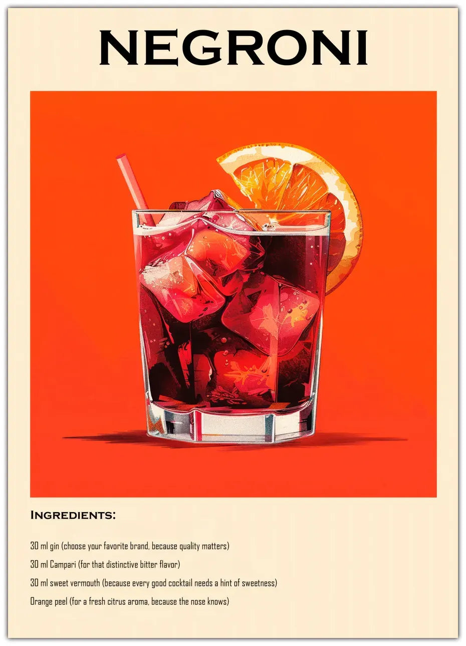 Fremhæv dine cocktailfærdigheder med vores elegante Negroni-plakat. Perfekt til at tilføje et strejf af sofistikeret stil til dit hjem eller bar. Gør dig klar til at skabe en stemning af cocktailglæde med denne smukke plakat.