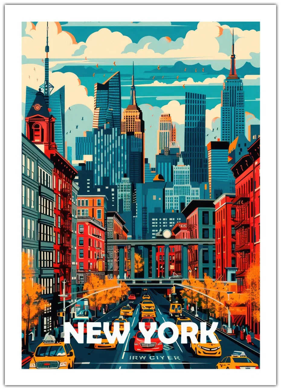 Træd ind i den pulserende betonjungle med vores fortryllende New York-plakat, der fanger den ikoniske energi og uovertrufne mangfoldighed i denne uendelige metropol. Med et livligt farveskema og en imponerende detaljerigdom tager denne plakat dig med på en visuel rejse gennem New Yorks legendariske skyline, travle gader og ikoniske vartegn.