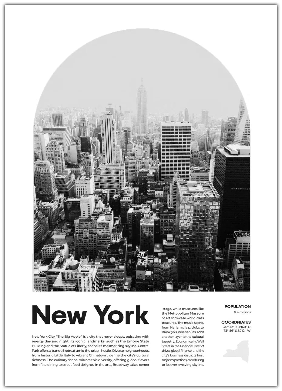 En elegant plakat med "New York No2" i et stilrent typografisk design – perfekt til dem, der elsker byens unikke atmosfære og ikoniske udtryk.