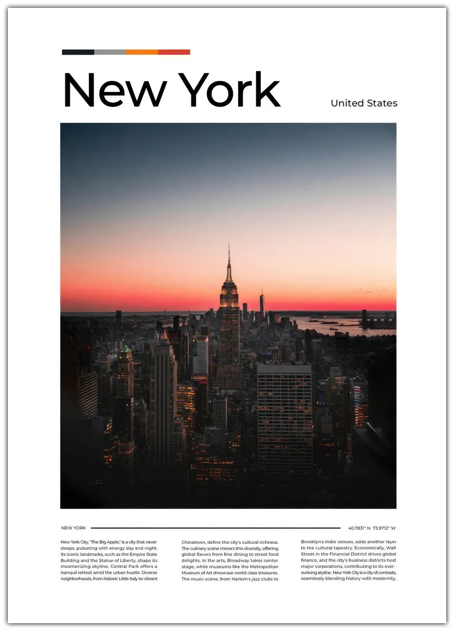 En stilren plakat med "New York" i et minimalistisk typografisk design – perfekt til dem, der elsker byens ikoniske skyline og pulserende energi.