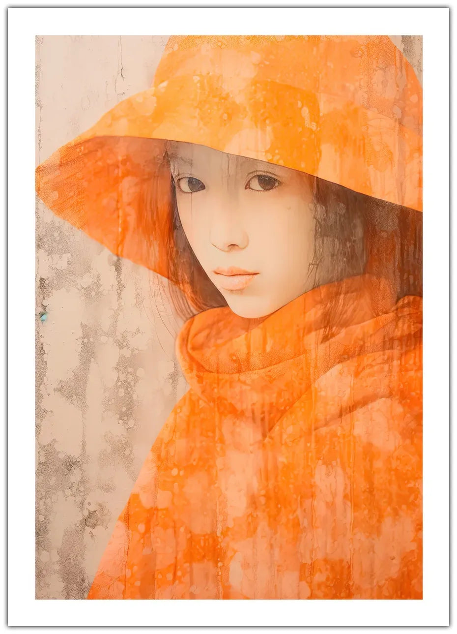 Denne plakat fanger essensen af stil med en person iført en iøjnefaldende orange frakke. Perfekt til at tilføre farve og karakter til enhver væg.