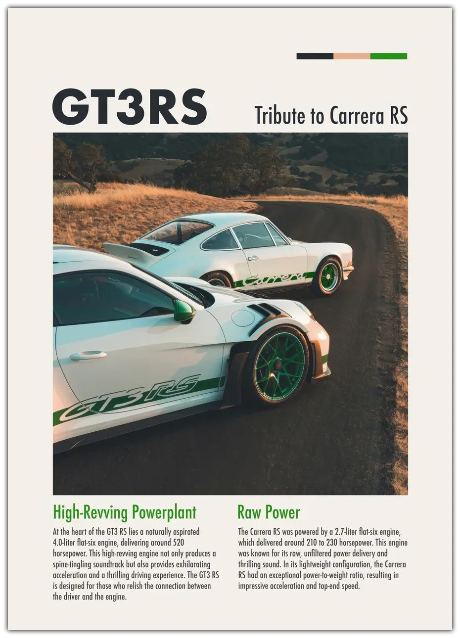 Porsche GT3 RS: Ren racerinspiration! Oplev den ultimative balance mellem kraft og præcision med vores plakat, der hylder Porsche GT3 RS' enestående ydeevne og ikoniske design.