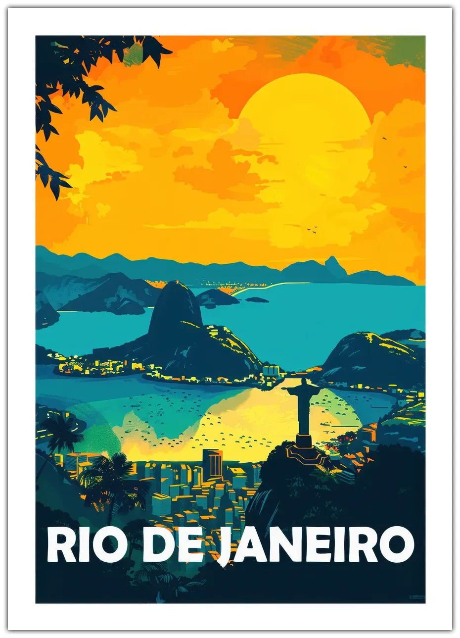 Oplev den betagende skønhed af Rio de Janeiro med denne plakat, der fanger byens imponerende landskab under en spektakulær solnedgang. Plakaten viser den ikoniske Kristus-statue, der strækker sig ud over den livlige by og den majestætiske kystlinje. En perfekt tilføjelse til ethvert rum, der ønsker at bringe lidt tropisk varme og eventyr.