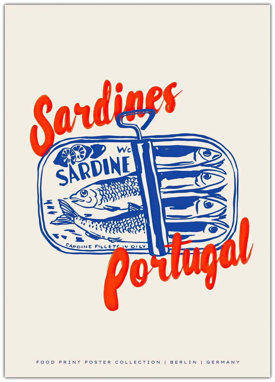 Sardines Portugal plakaten hylder den portugisiske kultur og dens klassiske sardiner på dåse – et motiv, der både er humoristisk og stilfuldt. De stærke blå og røde farver skaber et frisk og energisk udtryk, der passer perfekt til køkkenet, stuen eller sommerhuset. En plakat, der kombinerer retro charme med moderne grafik.