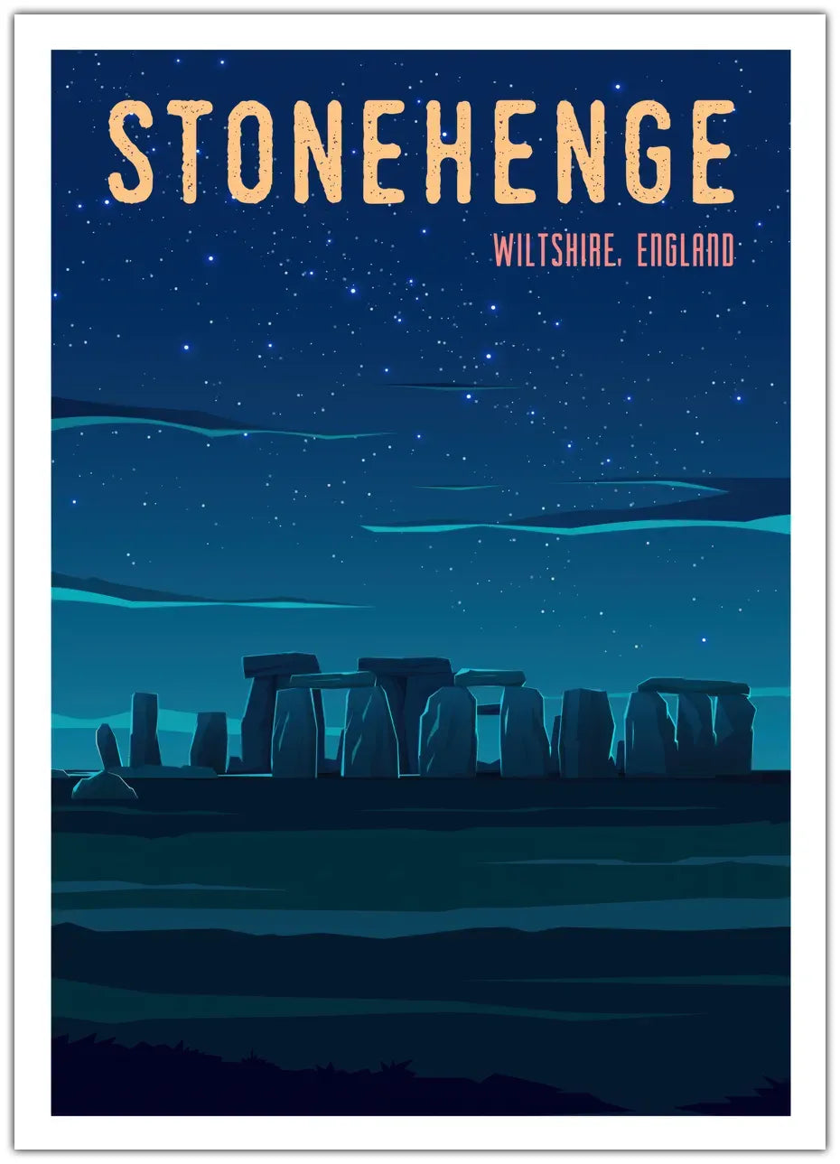 Oplev mystikken fra oldtiden med vores "Stonehenge" plakat. Denne fascinerende illustration fanger de ikoniske stenmonumenters tidløse skønhed, og bringer en følelse af historisk vidundere og ærefrygt ind i dit hjem.