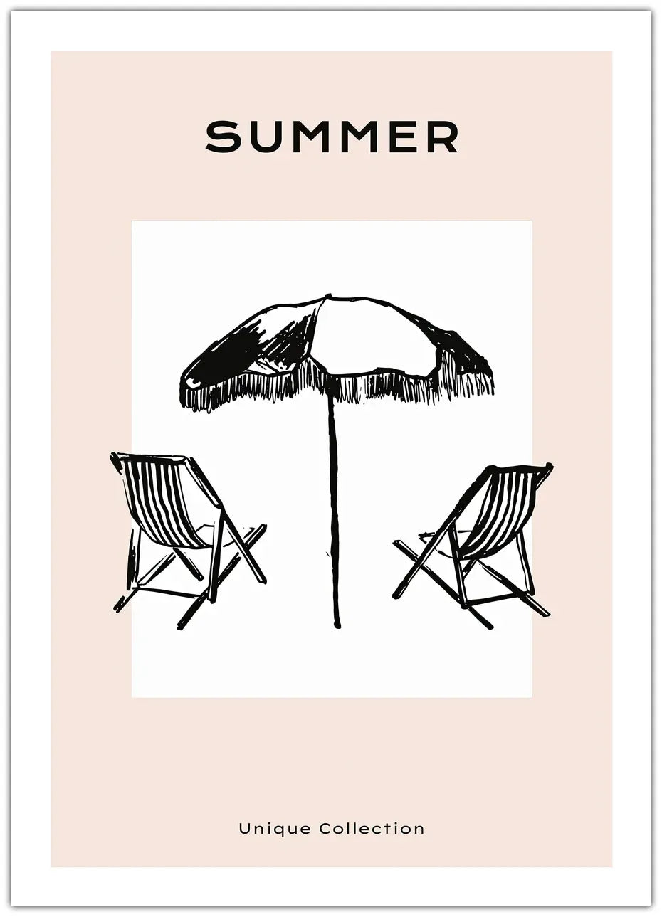 Slap af i stil med vores "Summer Chairs" plakat. Denne hyggelige illustration fanger essensen af sommerens afslappende øjeblikke og bringer en følelse af varme og komfort ind i dit hjem.