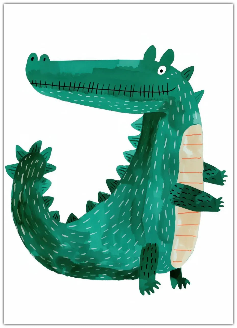 En fængslende plakat med en majestætisk krokodille, der fanger øjet med sine detaljerede skæl og intense blik. Perfekt til at tilføje et strejf af vild natur til ethvert rum.