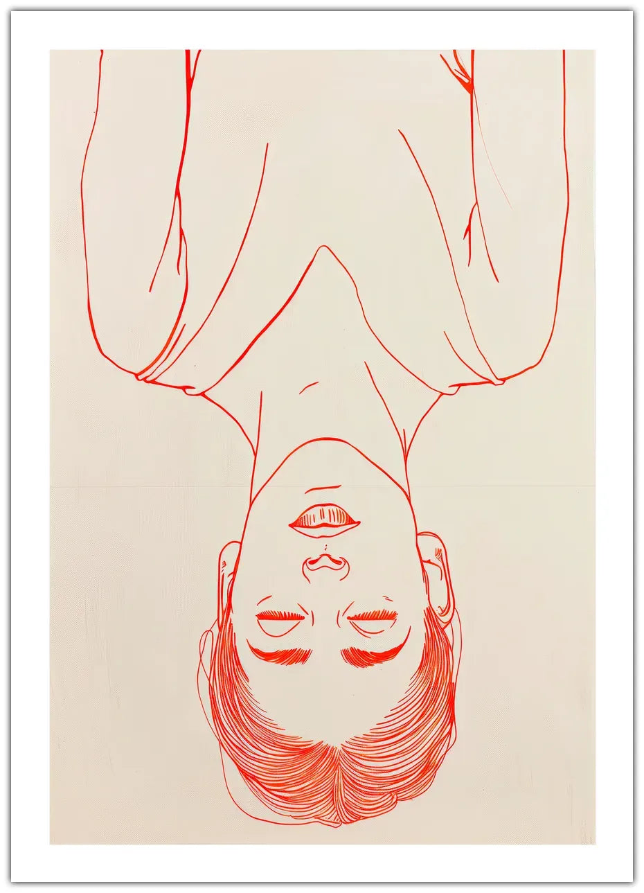 Upside udforsker verden fra et nyt perspektiv. Med sin dristige komposition vender dette kunstværk din opfattelse af virkeligheden på hovedet og inviterer dig til at se skønheden i det uventede. Perfekt til at tilføre en kreativ kant til dit hjem.